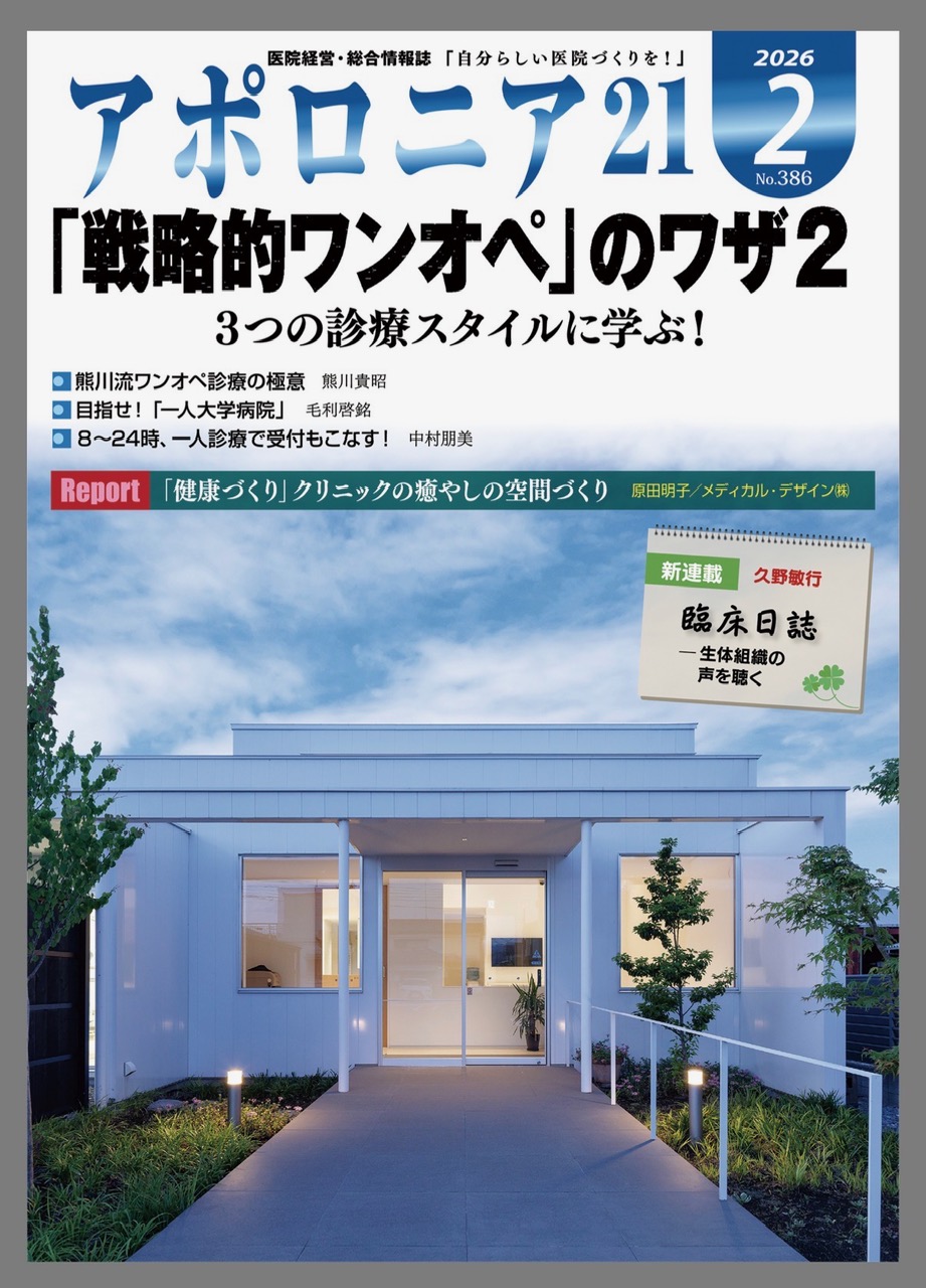 当院が歯科雑誌「アポロニア21」の表紙に掲載されました。また4ページにわたり院内の様子が掲載されています。